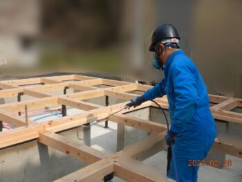 最近はあらかじめシロアリ予防の薬剤を加圧注入している木材もあるので、それをつかえば安心…と思いきや、使用している薬剤によっては、必ずしもシロアリ被害にあわないとは限りません…。忌避性の強い薬剤だと、その木材を避けてフローリングに上がっていって被害が広がる事も実際あります。